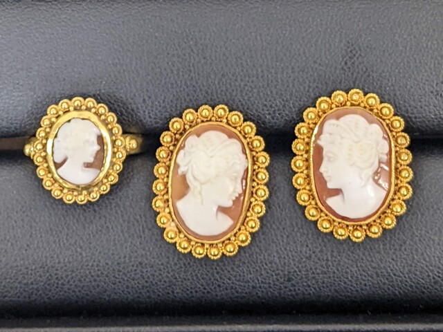 カメオです。坂出市在住の60代女性のお客さまにお売りいただきました。枠が高品位の金であり、高額査定になりました。ご自宅に同じようなお品物がありましたら、お気軽に当店の無料査定をご利用ください。