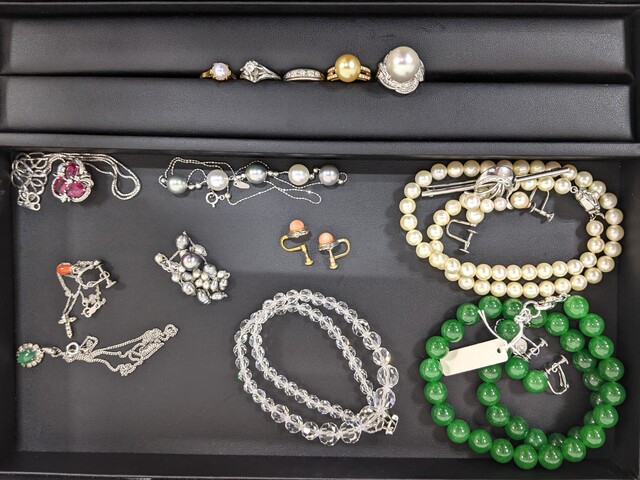ジュエリーのおまとめです。坂出市にお住まいの70代女性のお客さまにお売りいただきました。ジュエリーをまとめてご売却される際は、是非当店に査定させてください。買取額には自信があります。