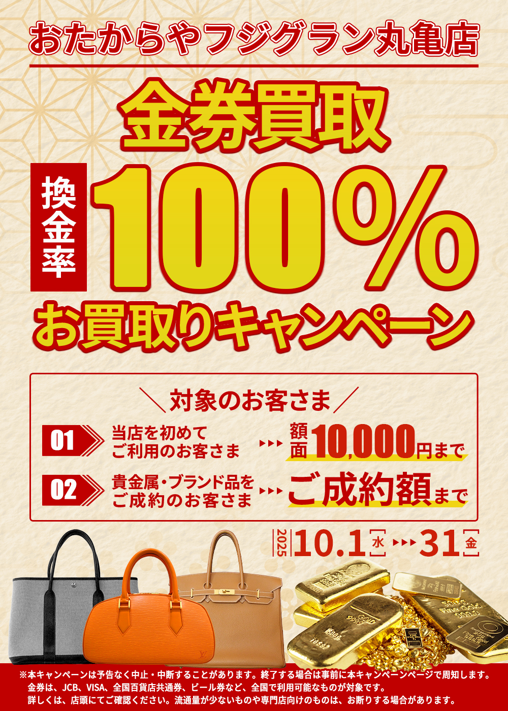 期間中、お客様の状況に応じて、お持ちの対象金券を額面通りの換金率100%でお買取りいたします!